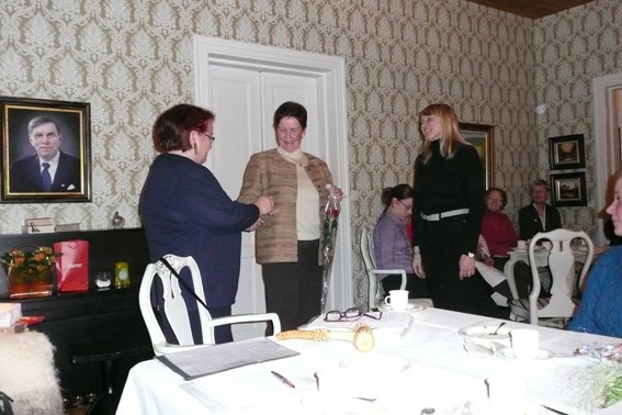 Terttu Heinoselle kultainen hevosenkenkä riipus 15 vuotisesta jäsenyydestä.